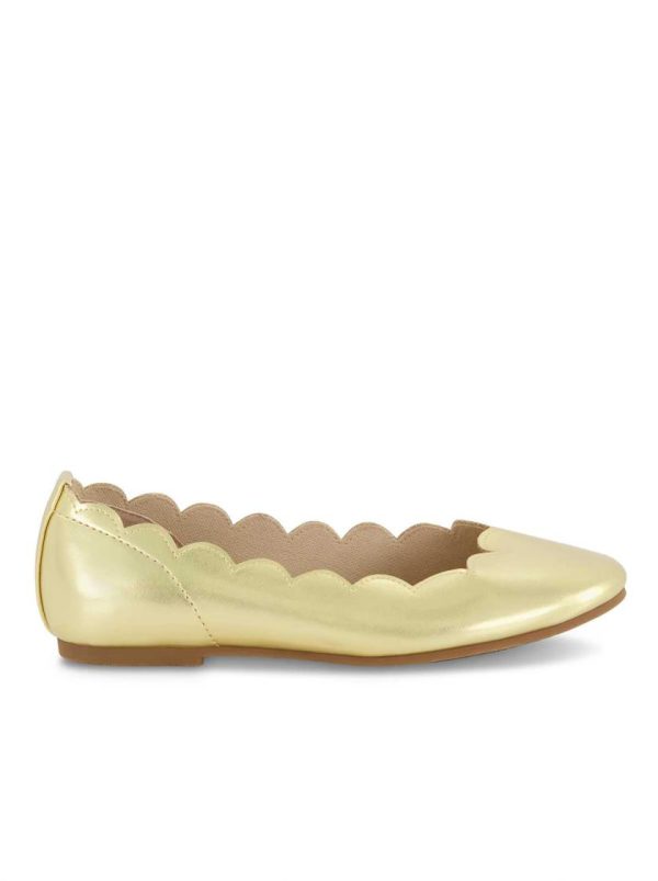Discover the perfect blend of style and comfort with these charming Girls’ Amy Scallop Ballet Flats in radiant Gold. Designed for both playtime and special occasions, these ballet flats offer timeless elegance with a modern twist.