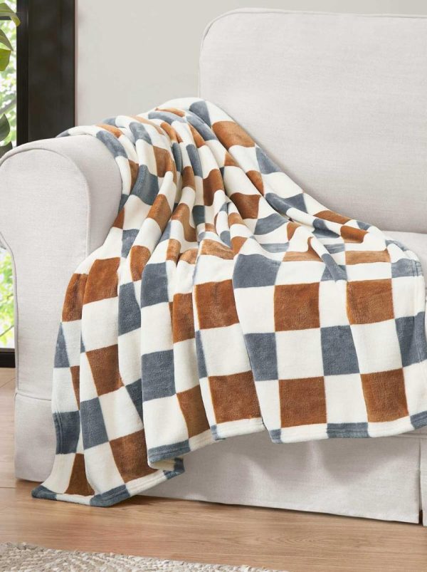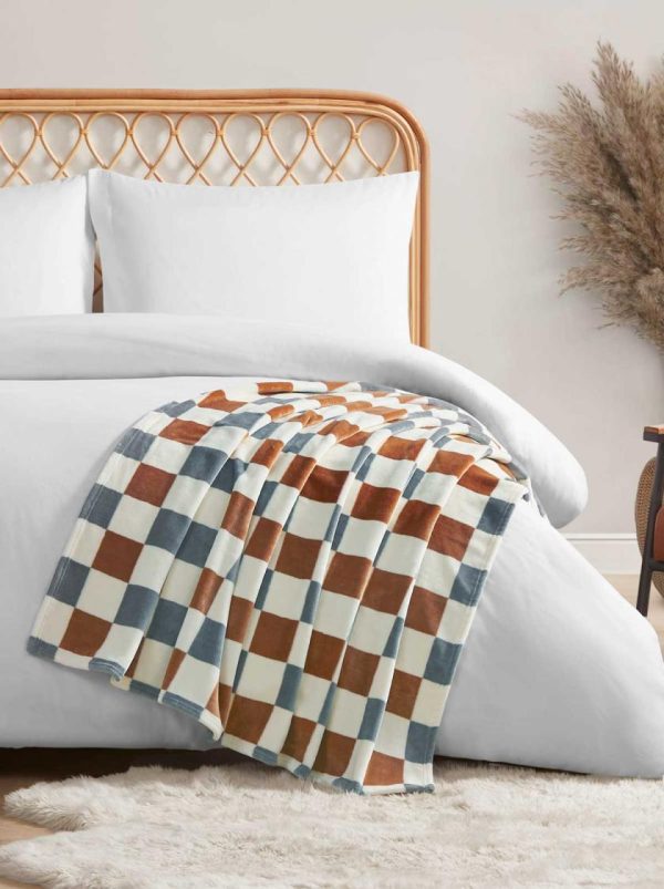 Home Jessica Simpson Blankets | Emery Checkerbaord Plush Throw In Rust & Grey