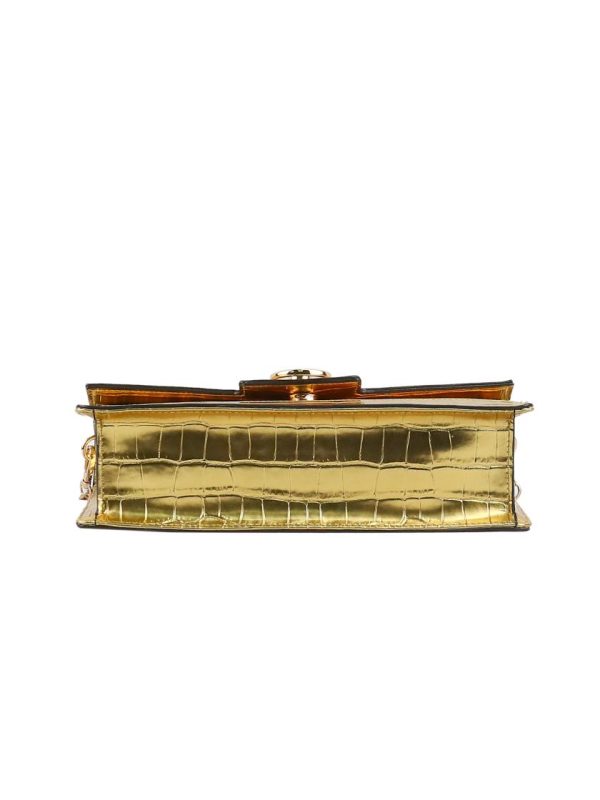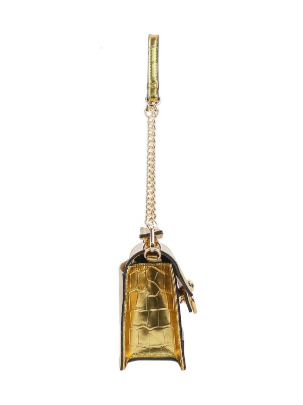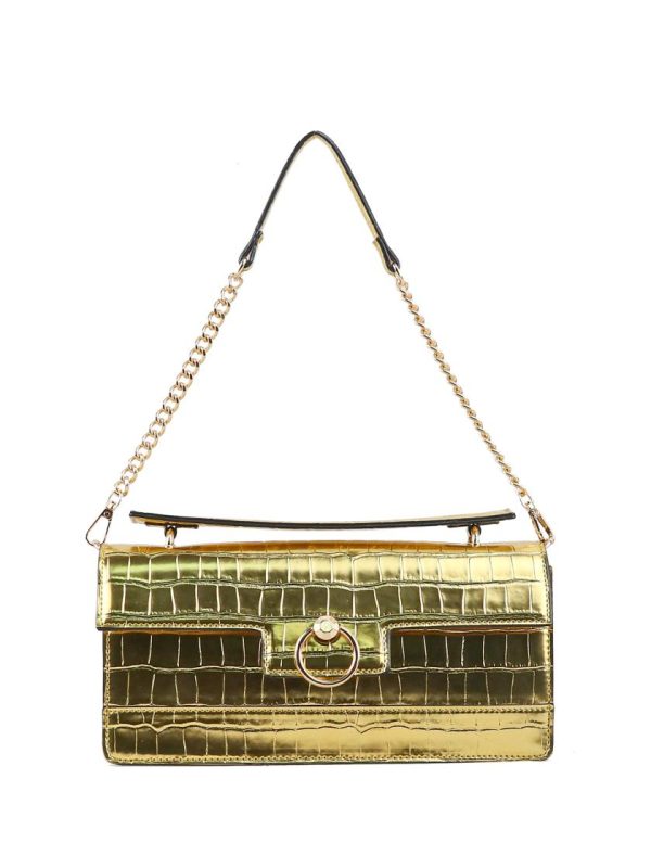 Elevate your style with this stunning gold crocodile-embossed clutch that delivers sophisticated glamour for any occasion. Features a versatile gold-tone chain strap that converts from shoulder bag to handheld clutch in seconds. The sleek rectangular design offers just enough space for your essentials while maintaining a polished, compact profile. Perfect for evening events or adding a touch of luxury to your daytime look.