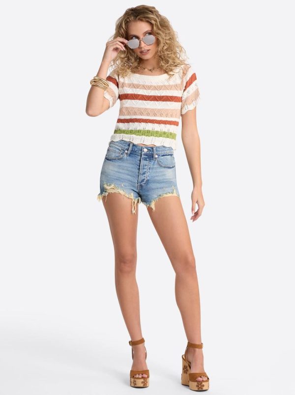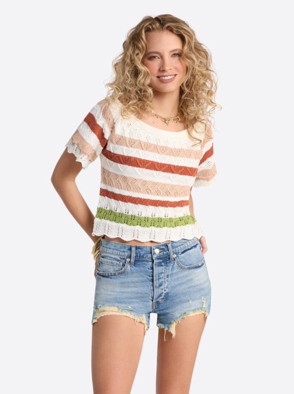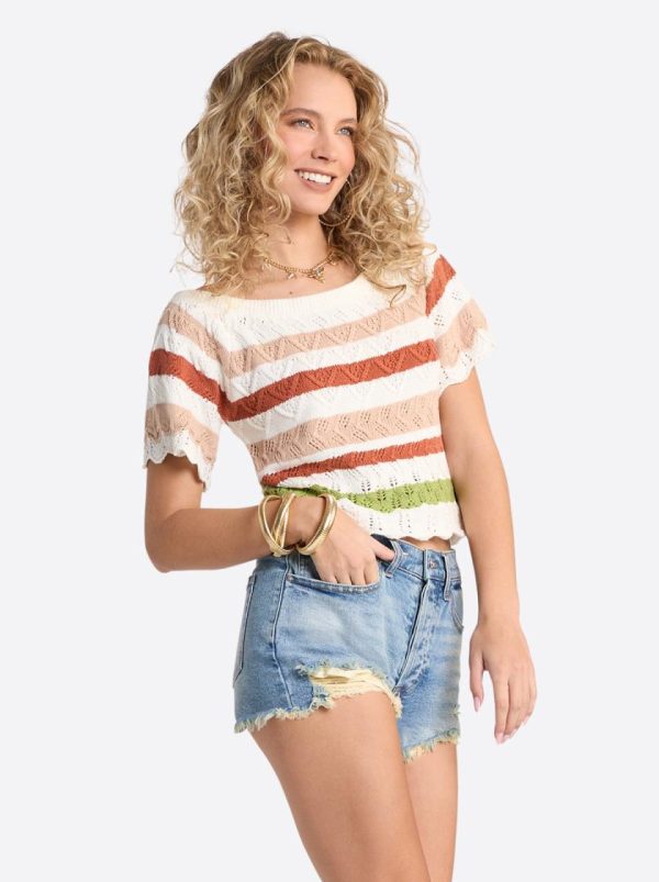 Elegant popover sweater featuring delicate flutter sleeves that add feminine charm to your wardrobe