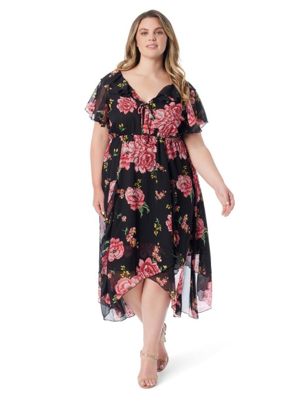 Elegant fit and flare maxi dress featuring a beautiful sketchy roses print that flows gracefully with every step