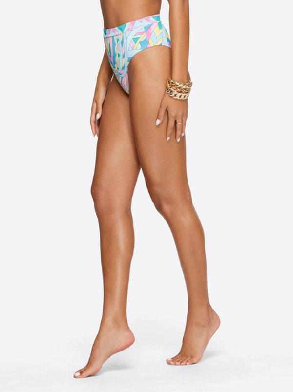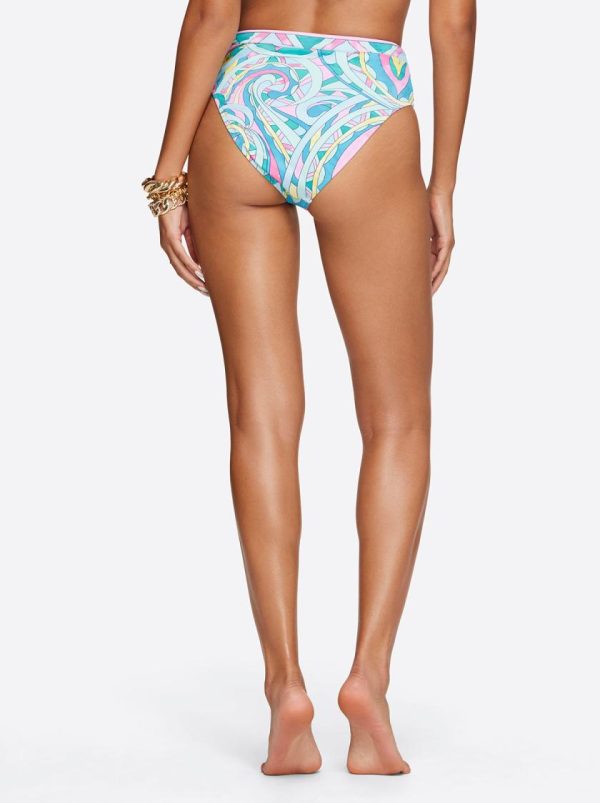 Elevate your swimwear collection with these stunning high-waisted bottoms featuring a beautiful paisley pattern in powder blue multi tones
