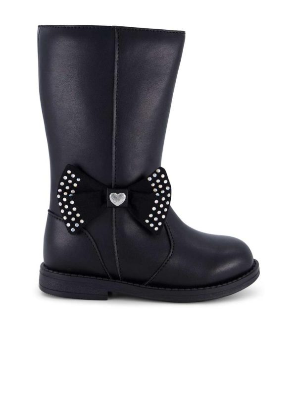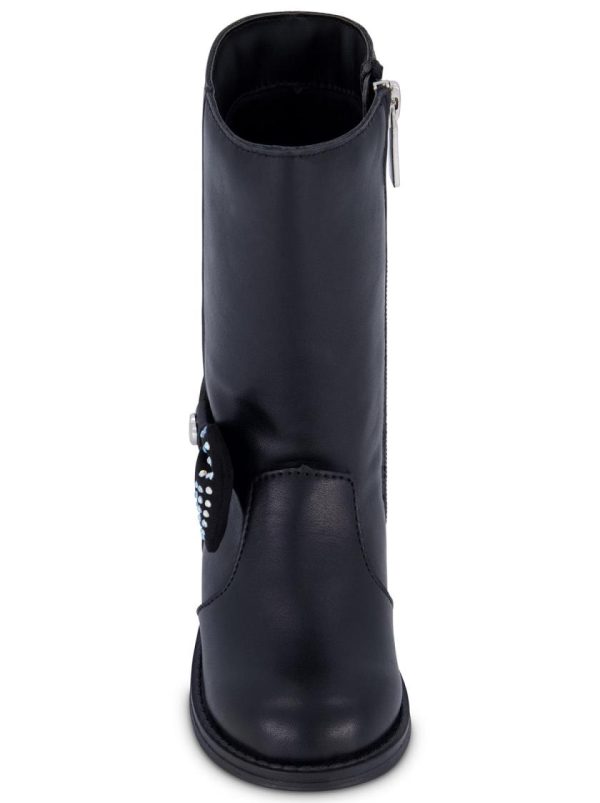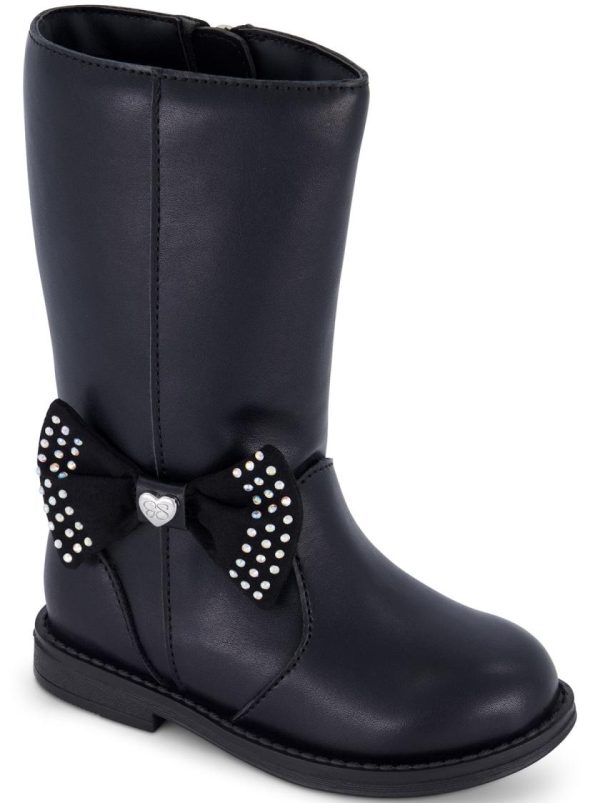- Elegant microsuede bow adorned with sparkling clear crystals and charming heart hardware