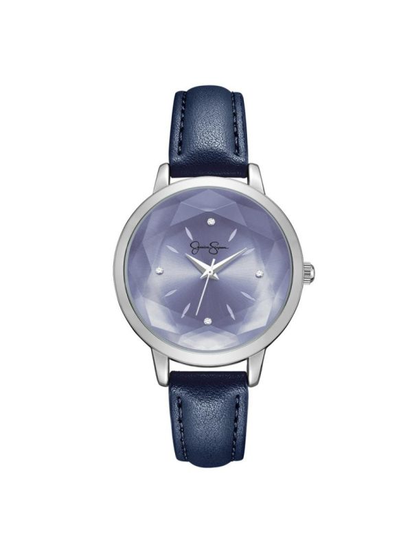 Elegant Faceted Glass Watch with sophisticated navy styling