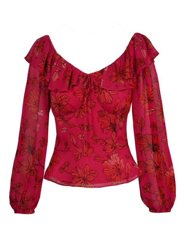 Elegant long sleeve blouse featuring a beautiful blossom print design