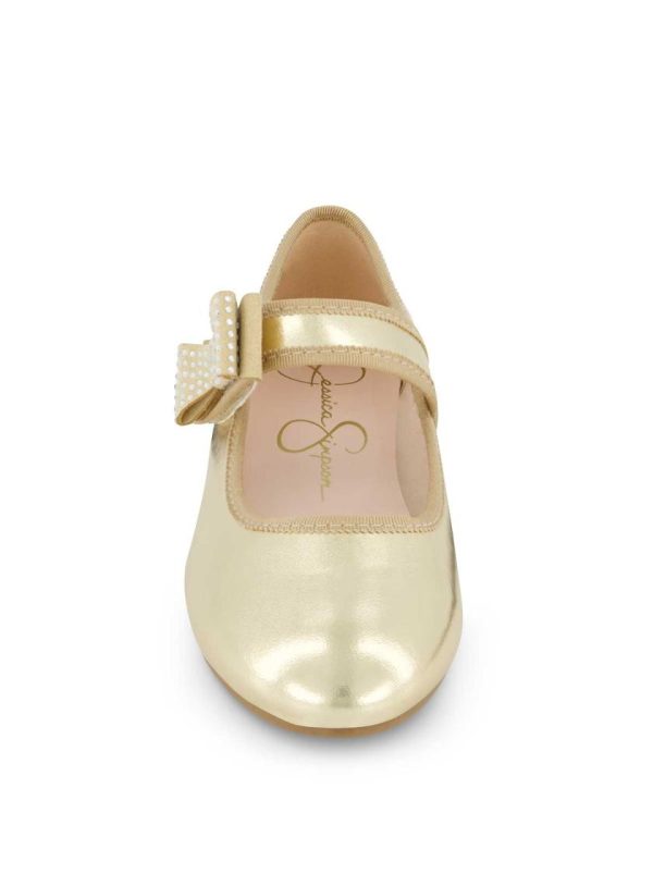 Women Jessica Simpson Kids | Little Girls’ Amy Crystal Bow Ballet Flat In Gold